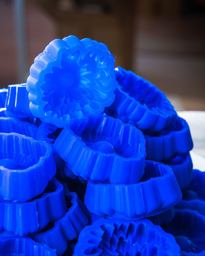 On a donc imprimé ces quatre fleurs uniques. Ce sont nos "maîtres-modèles". Il fallait qu'elles soient parfaites, car ce sont elles qui ont servi de base pour créer tous les moules de la série. Et grâce à nos machines à Roubaix, on a pu respecter exactement les dessins de la Cheffe.