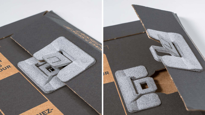 Lors de l’assemblage, un petit clip vient verrouiller la partie supérieure du packaging.